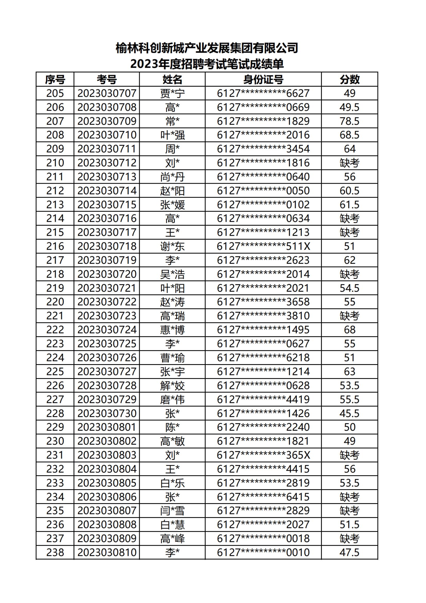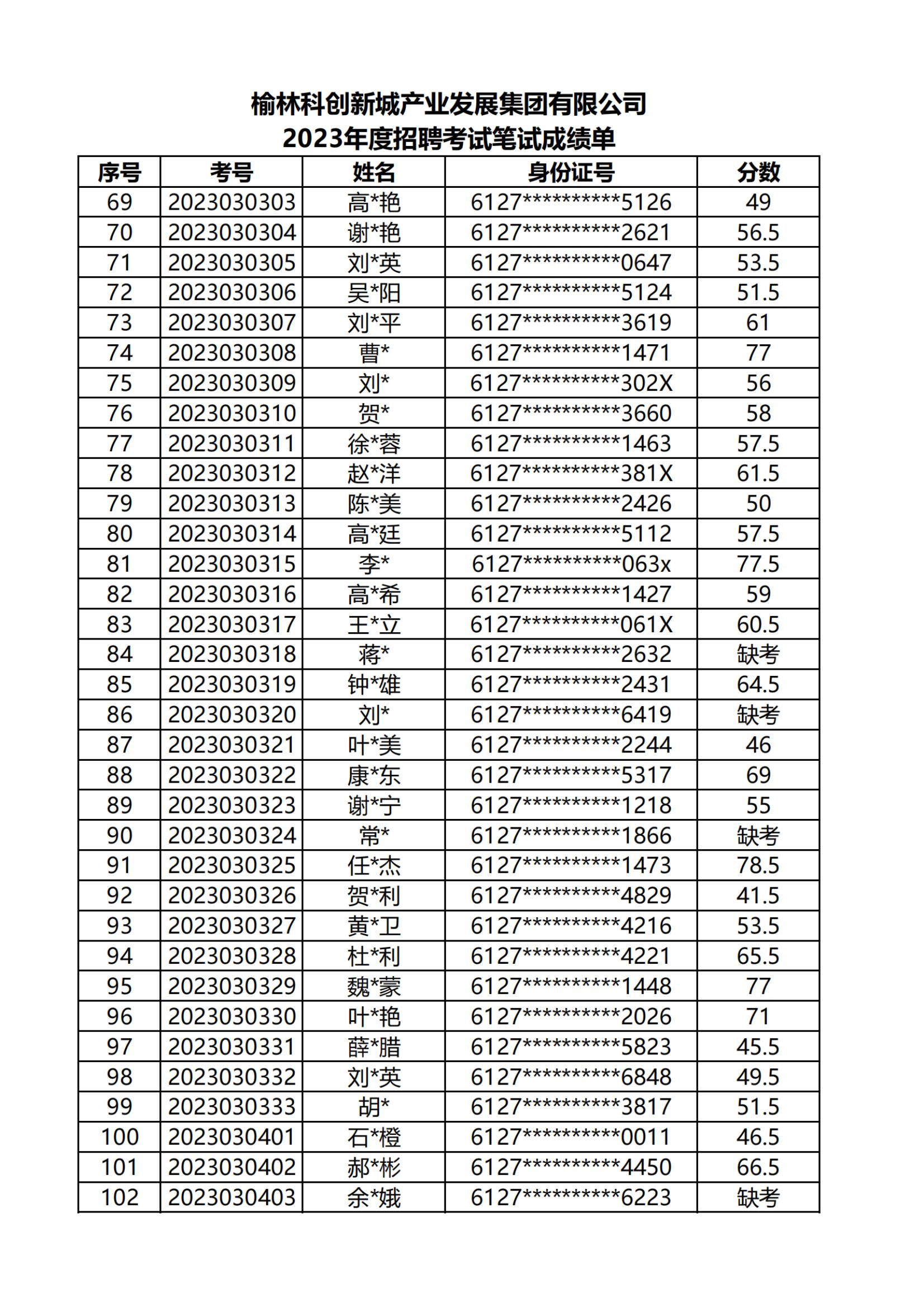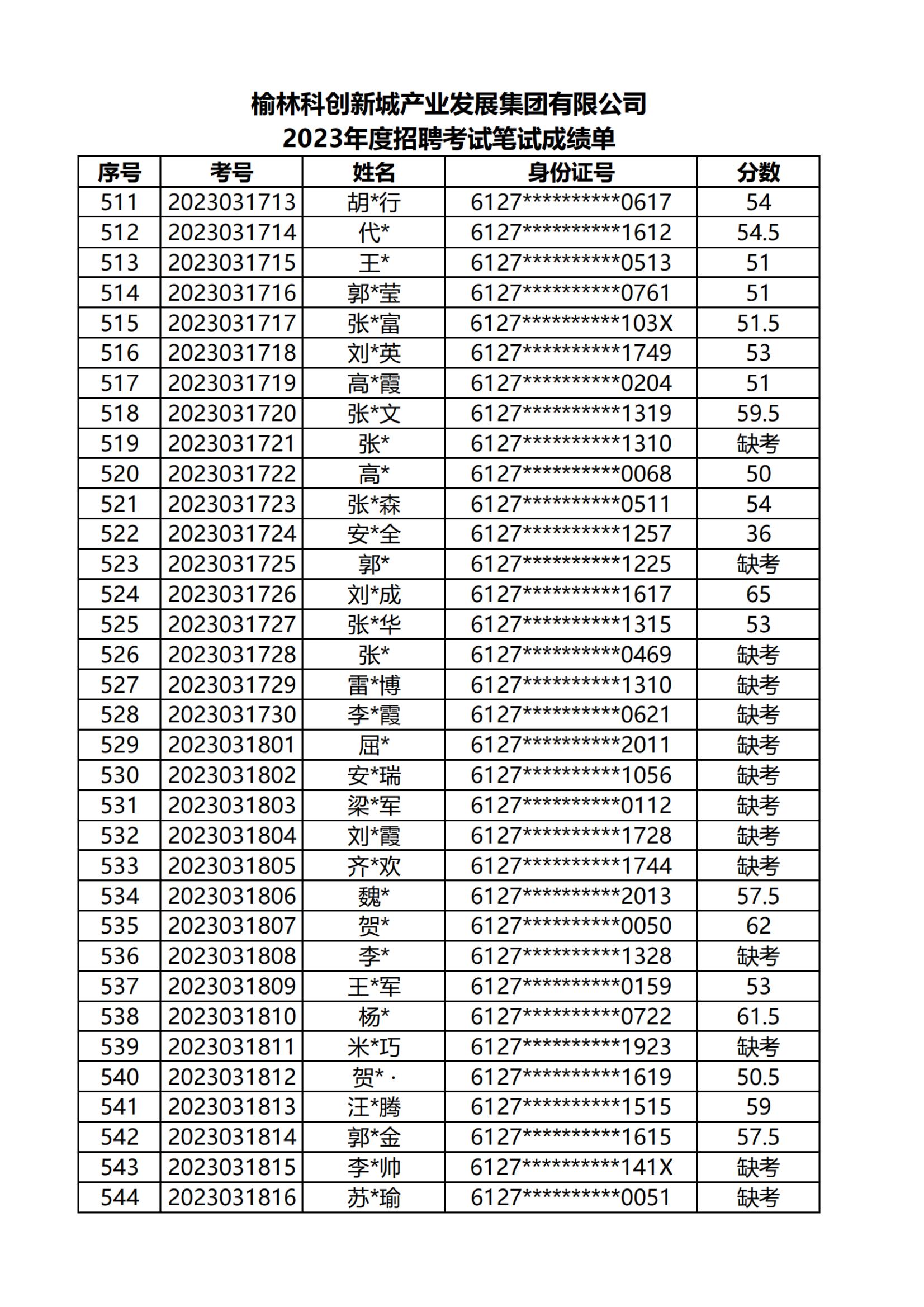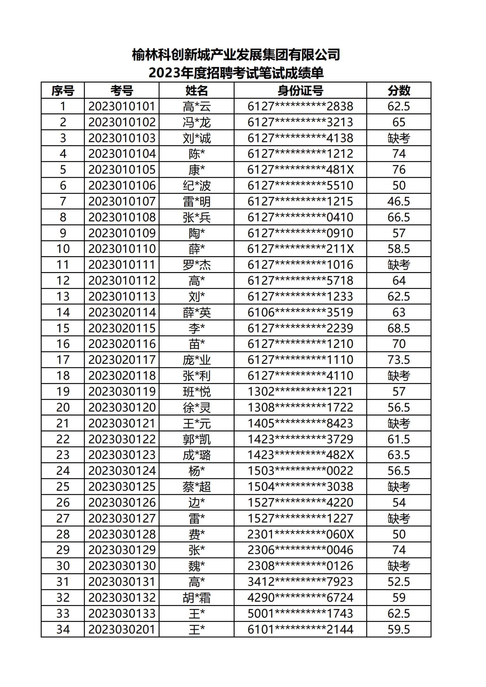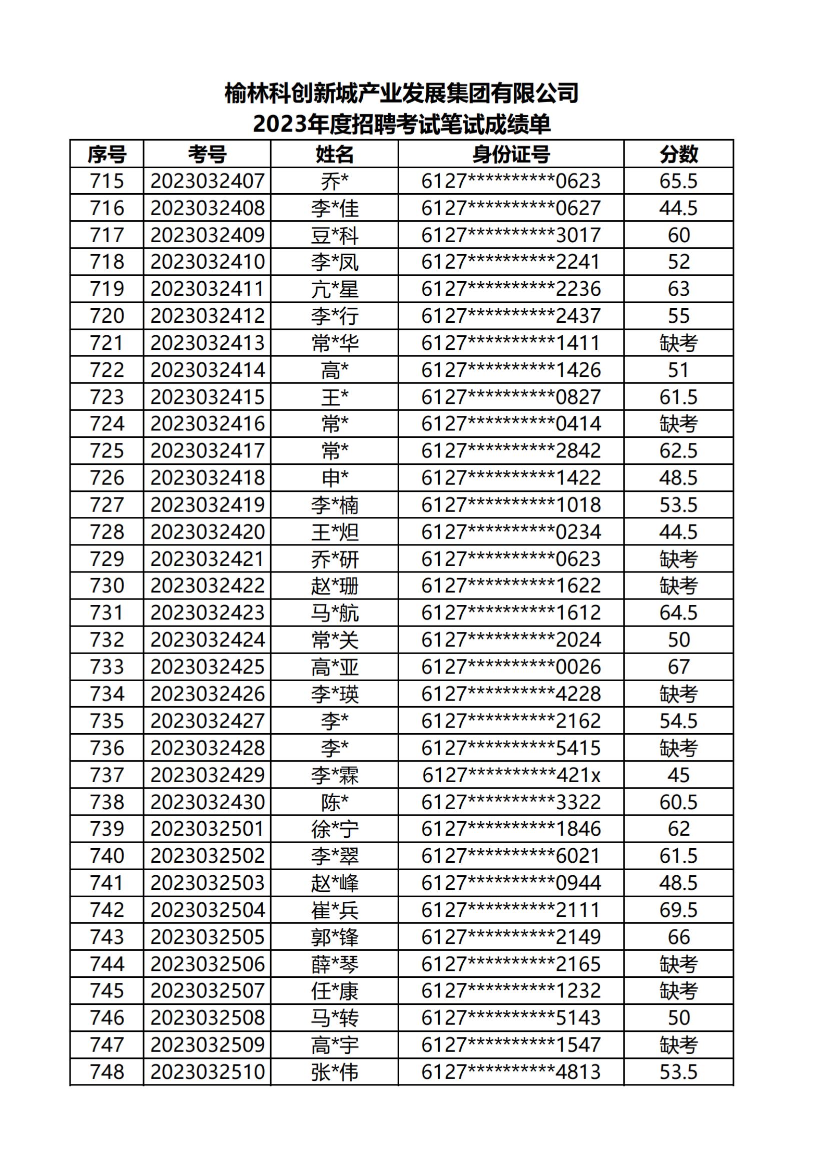 榆林科創(chuàng)新城產(chǎn)業(yè)發(fā)展集團有限公司2023年招聘考試筆試成績公示