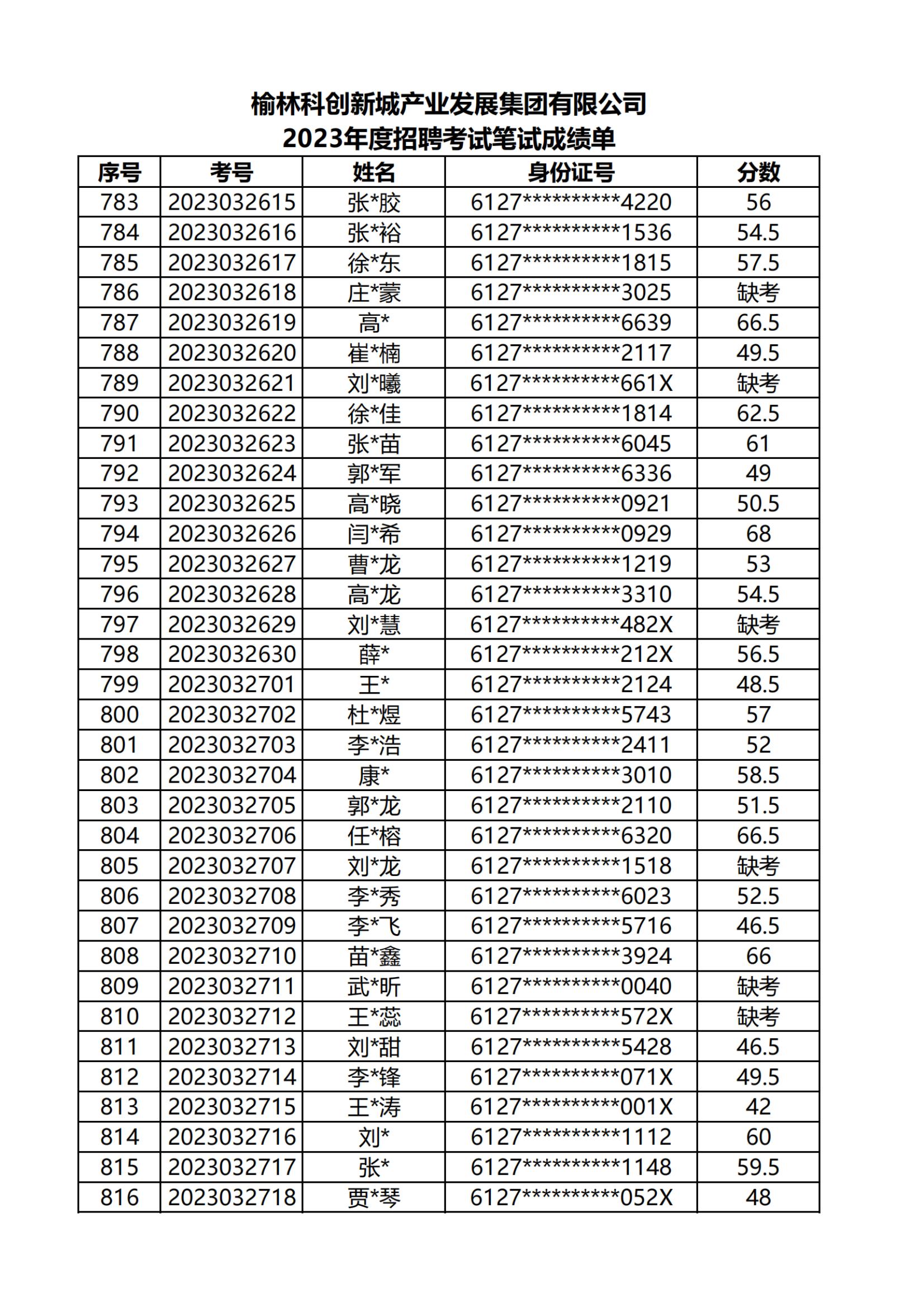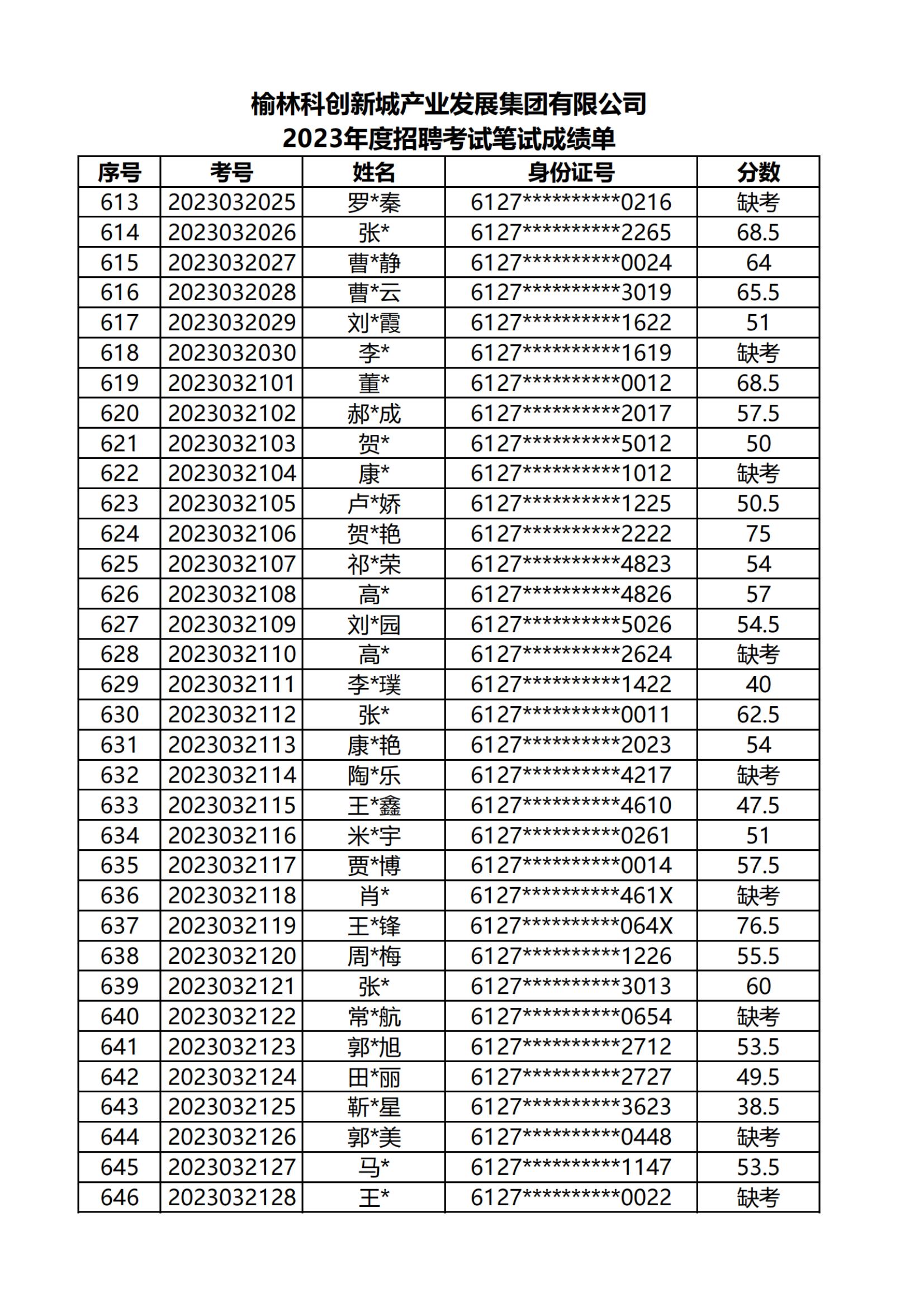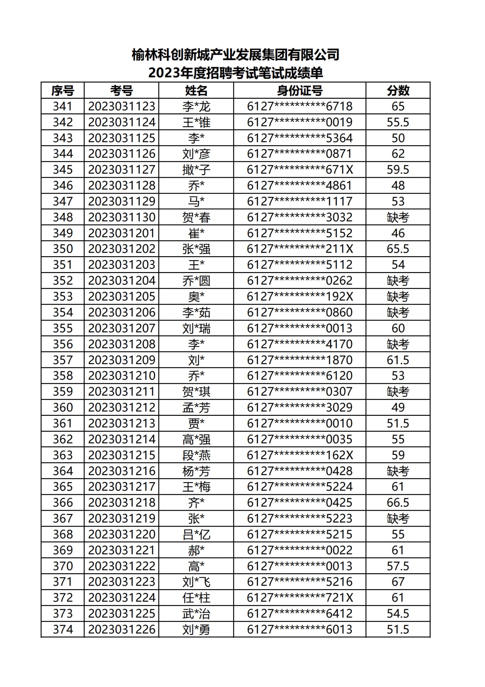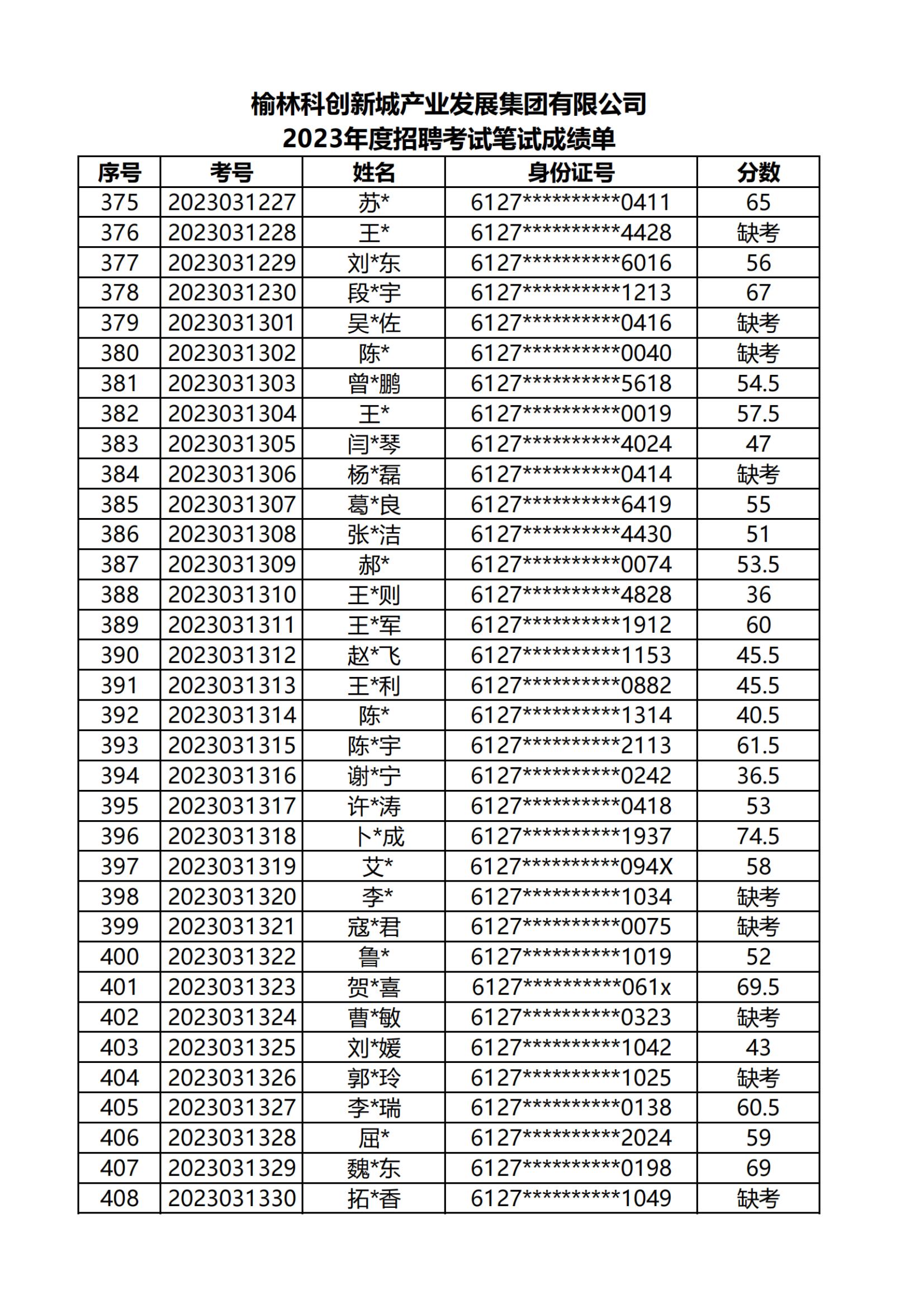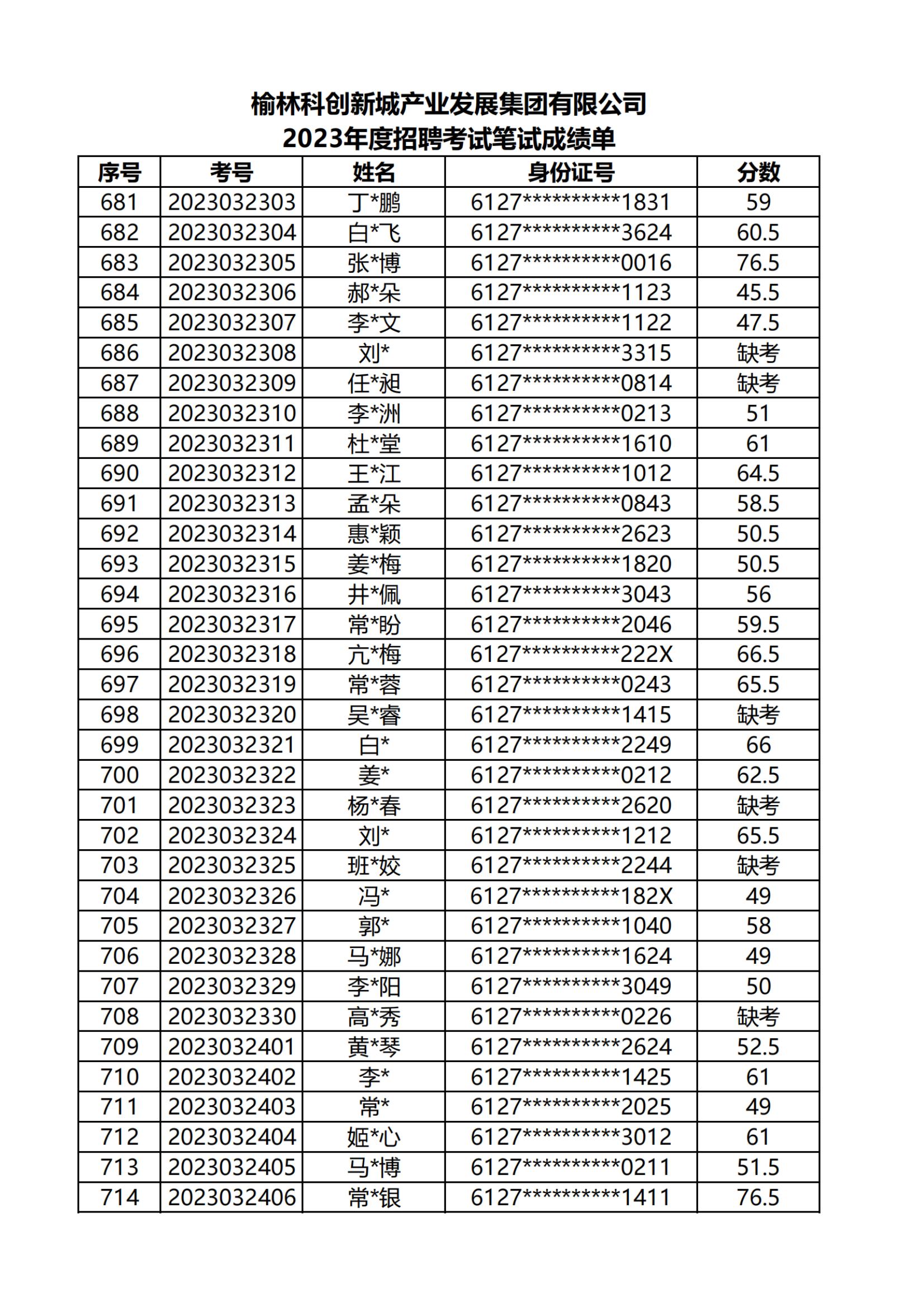 榆林科創(chuàng)新城產(chǎn)業(yè)發(fā)展集團有限公司2023年招聘考試筆試成績公示