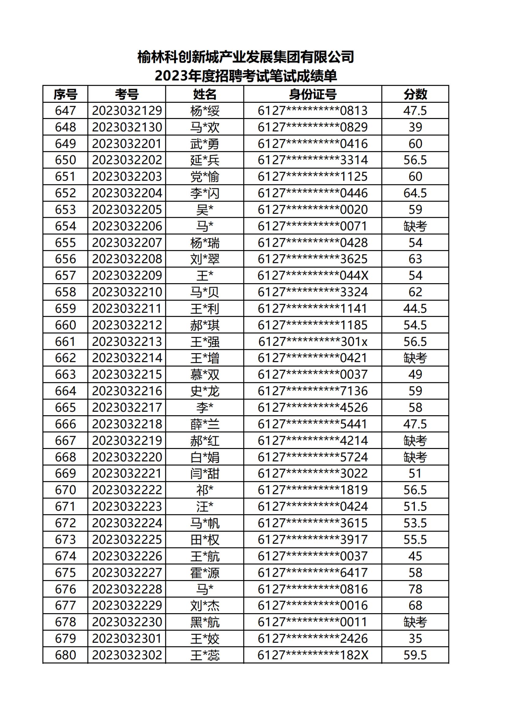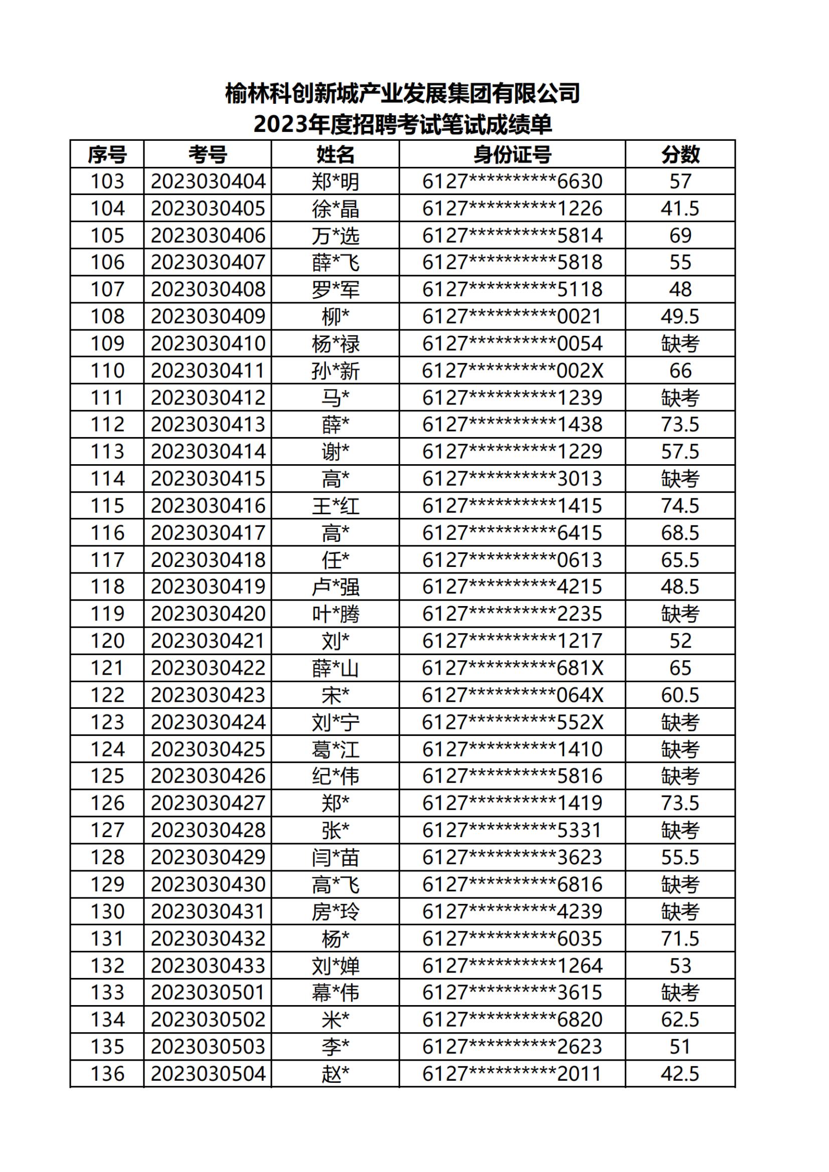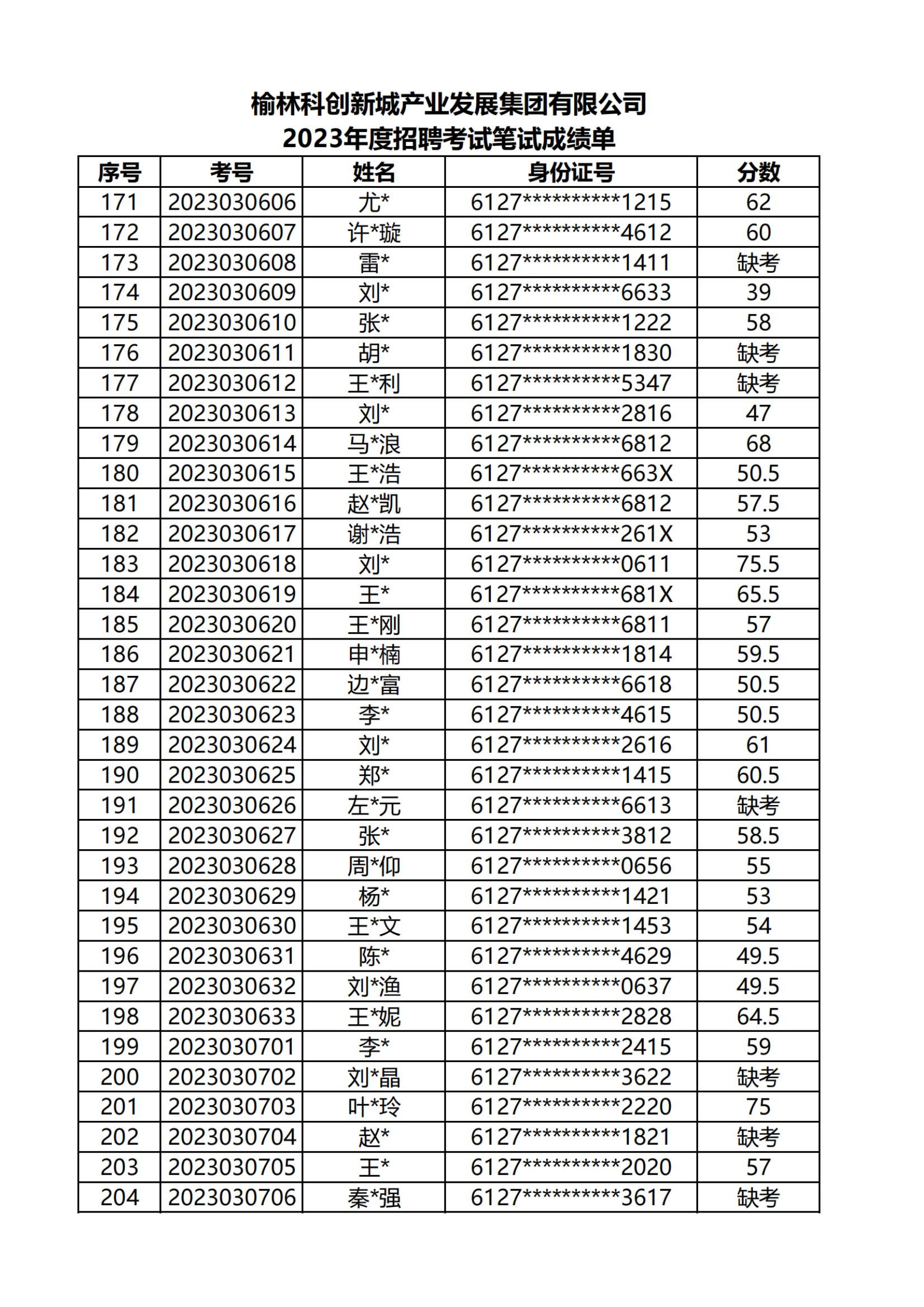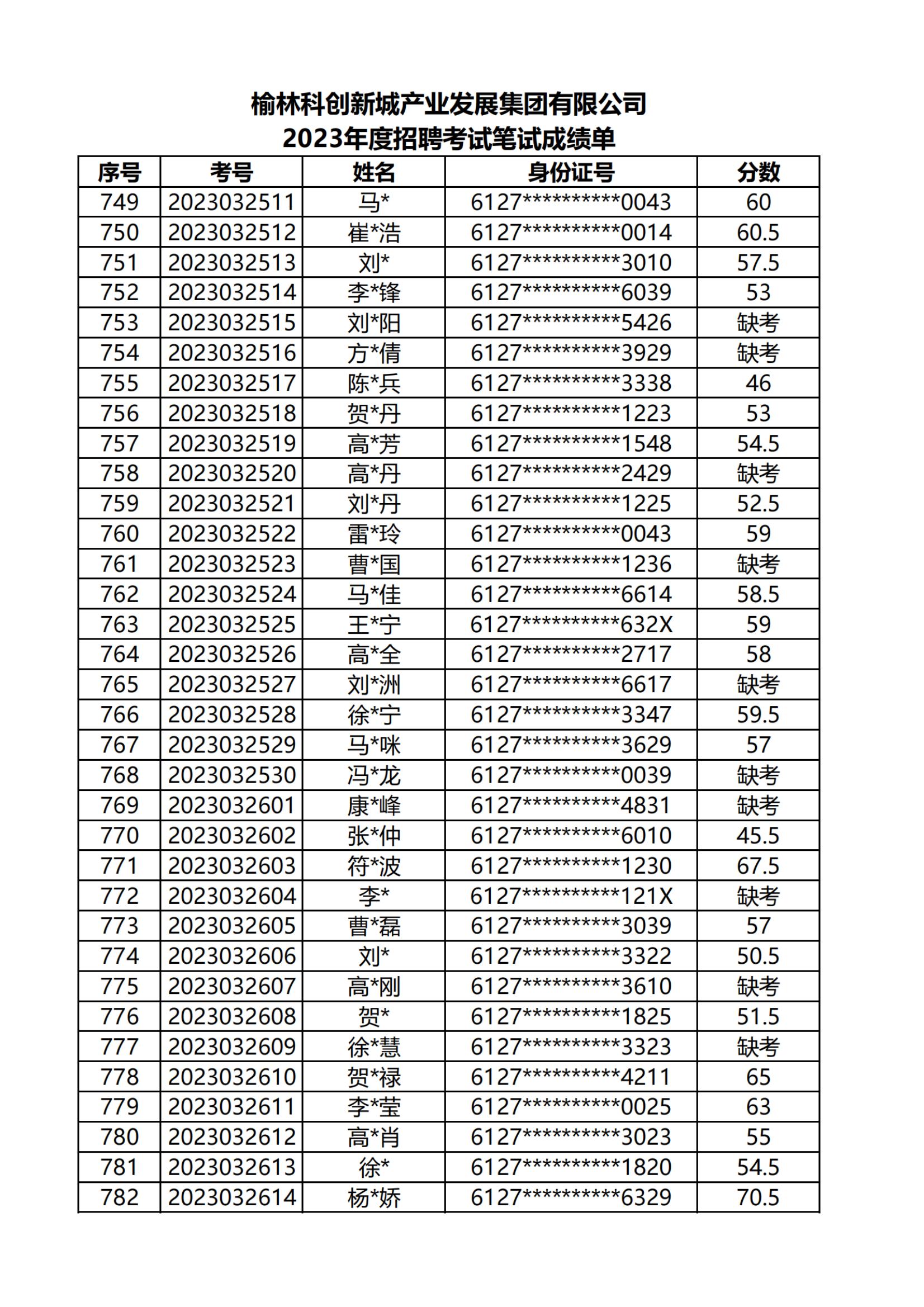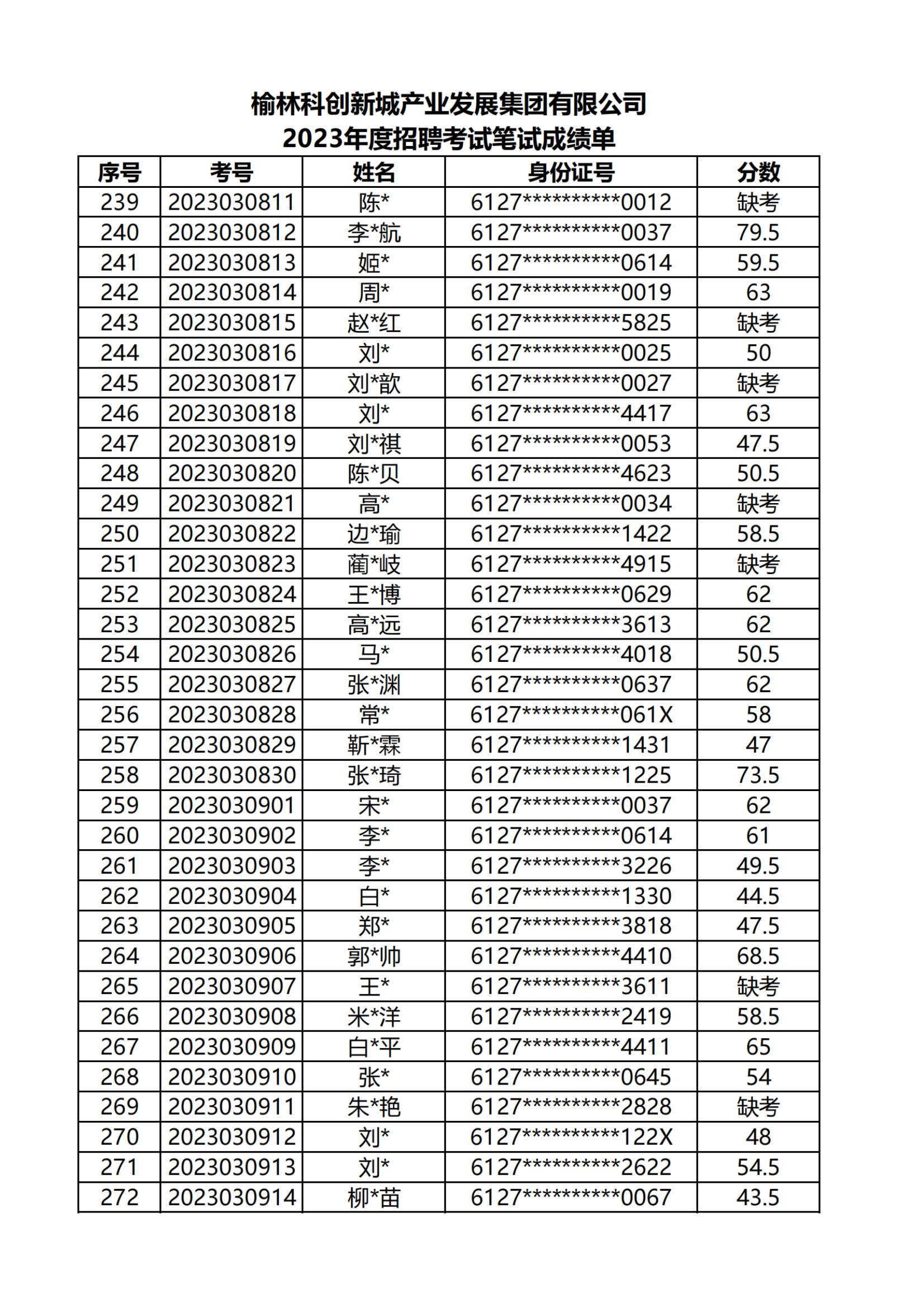 榆林科創(chuàng)新城產(chǎn)業(yè)發(fā)展集團有限公司2023年招聘考試筆試成績公示